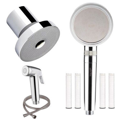Upgrade your bathroom with the Blue Oasis Luxury Silver Shower Set, featuring a sleek rain shower, built-in ionic filtration, and a premium bidet attachment. Designed with advanced KDF55 filtration to remove chlorine, heavy metals, and impurities — ideal for UAE homes. Enjoy pure, skin-friendly water with a modern aesthetic.