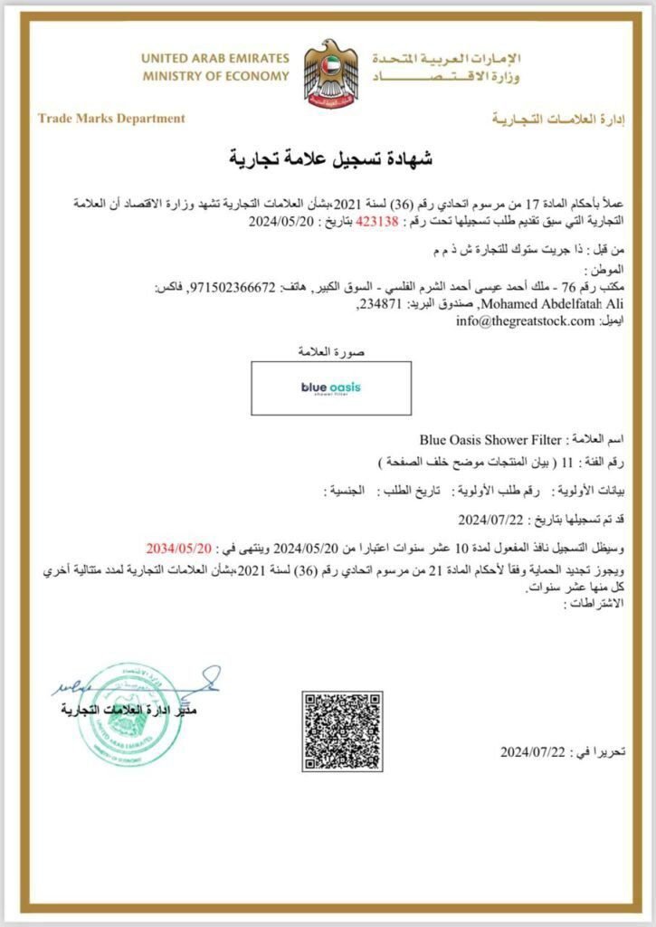 Trademarking the Blue Oasis brand, with trademark number 423138, was a strategic decision that has played a pivotal role in its success. A trademark is more than just legal protection; it’s a symbol of the brand’s identity, ensuring that customers can always trust the quality and authenticity of the products they purchase.